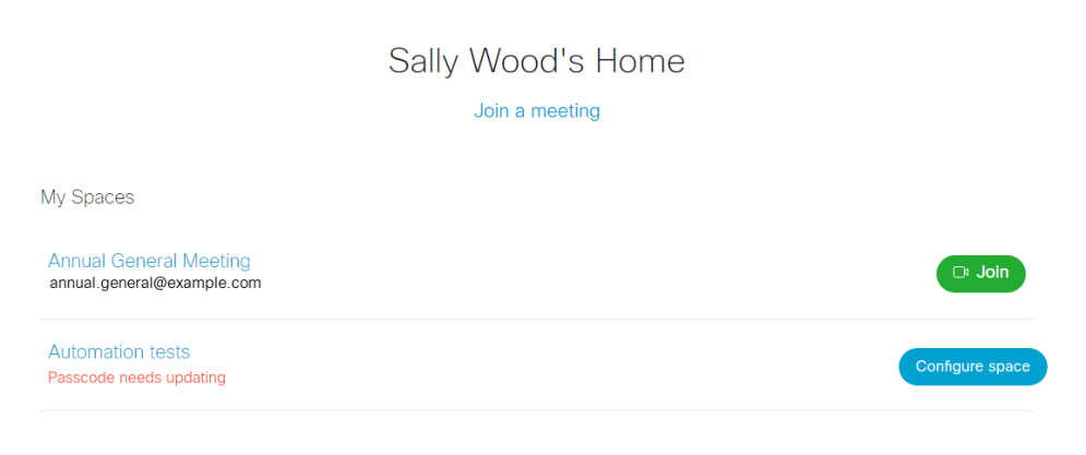 Web app allows you to manage your spaces. A space is a virtual meeting room that users with access can use to start or join meetings and share screen or presentation during meetings.